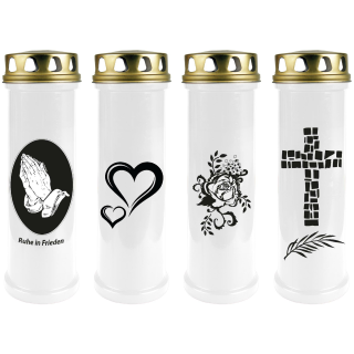 Mit unseren Kompositionsöllichtern erhalten Sie qualitativ hochwertige Grabkerzen mit einer Brenndauer von ca 100 Stunden. Das Grablicht benötigt keine extra Grableuchte und ist sofort einsatzfähig. Ohne Deckel können sie auch als Ersatzkerzen / Nachfüller für Grableuchten verwendet werden. Beachten Sie bitte die unten stehenden Brennhinweise.